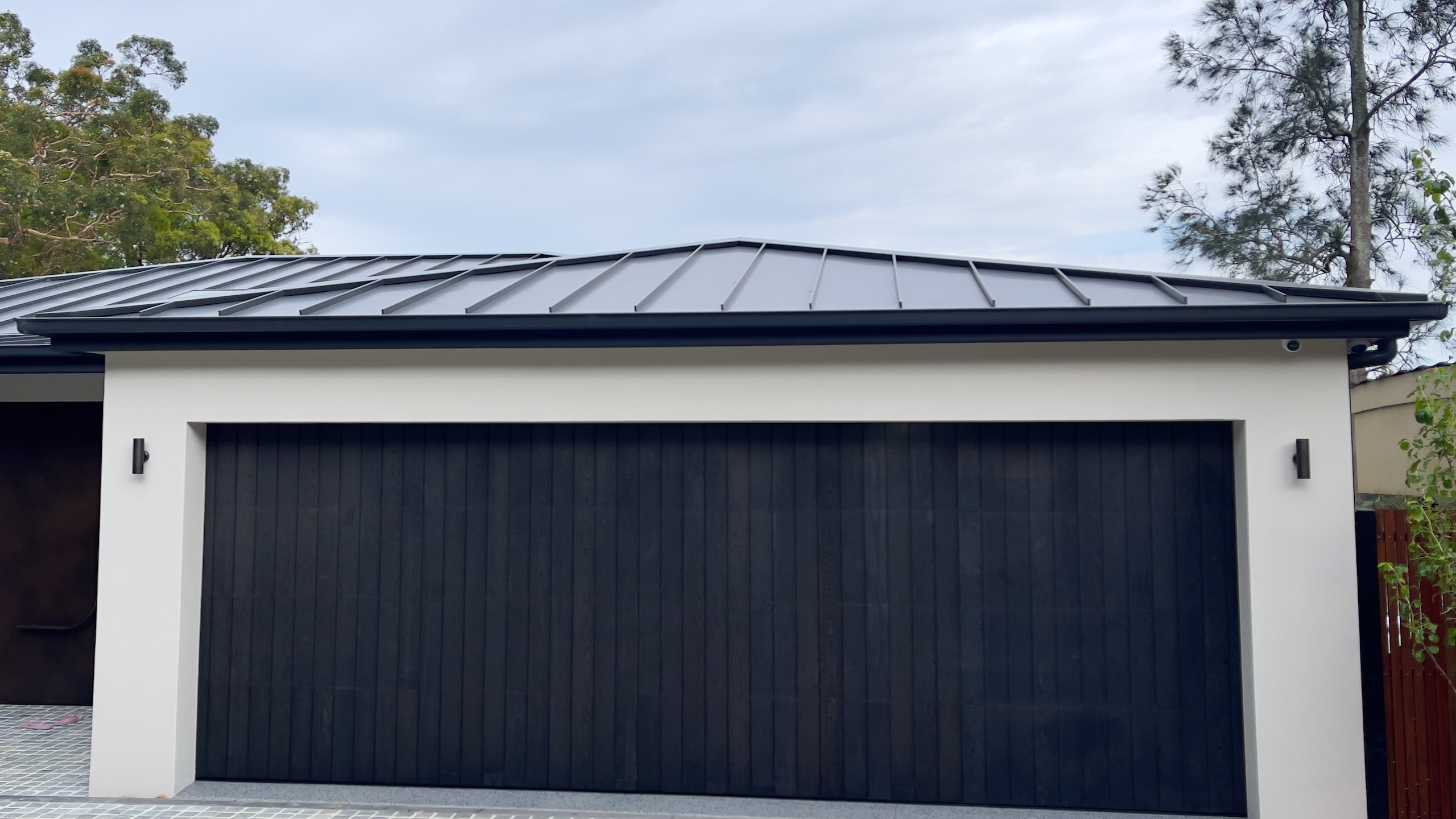 Because your garage door is exposed to the elements, we generally use hard wearing timbers. For flat facing doors, marine grade plywood is most often used. Timber battens come in a variety of finishes such as black butt or Abodo.