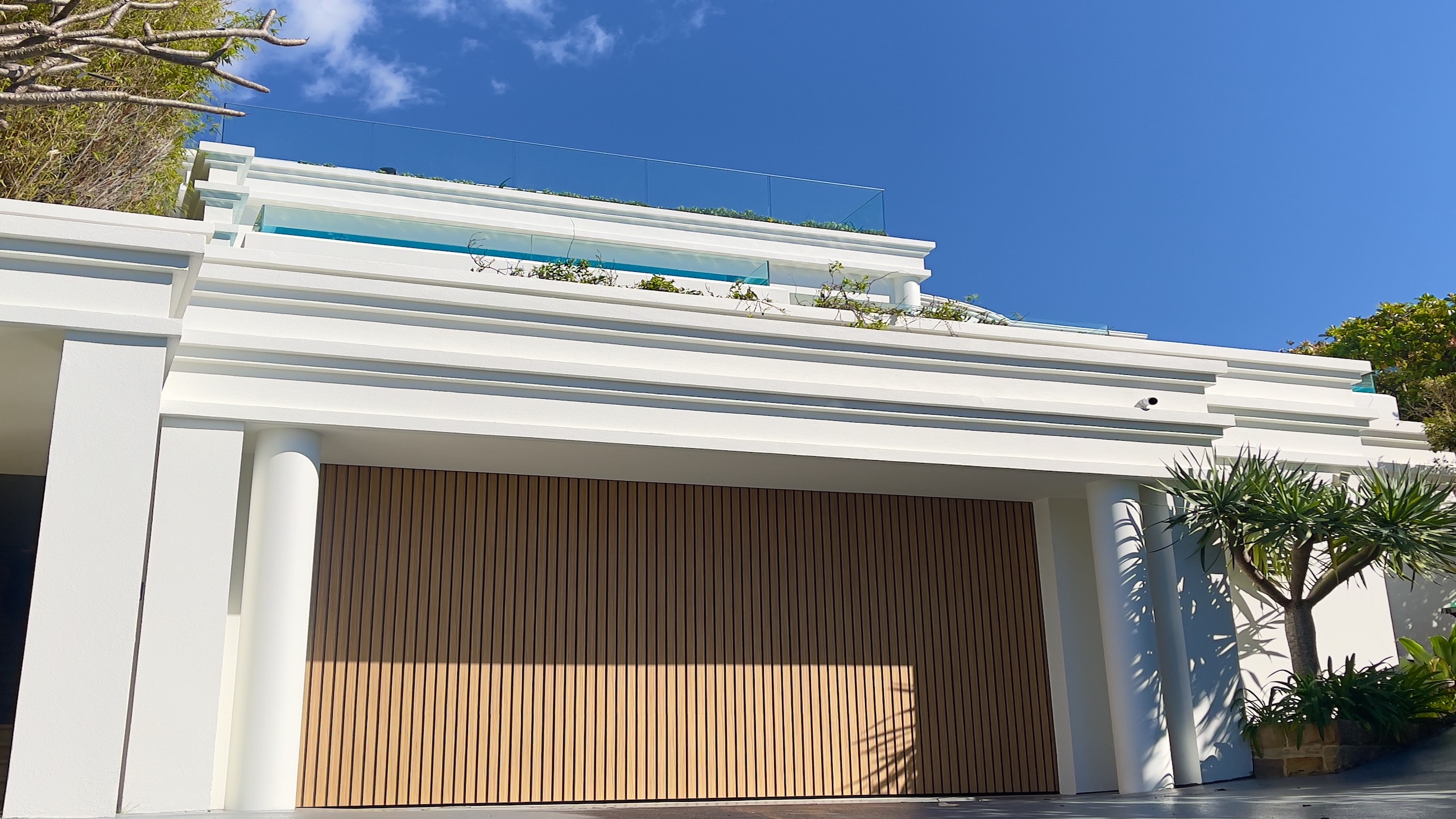 Essentially this style of door offers you all the looks of timber without any of the maintenance. Battens come in a large variety of “wood” types with unique grain styles and sizes. We usually design this style of garage door with vertical battens on an aluminium composite backing. These are fast becoming our most popular style.